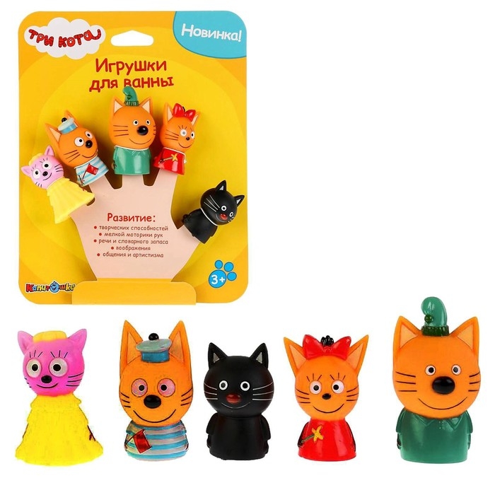 Набор для купания «Три Кота: Пальчиковый театр», 5 фигурок, на картоне, в коробке