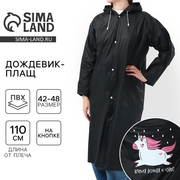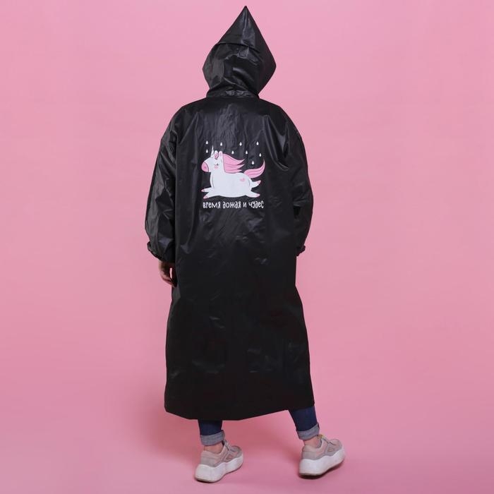 Дождевик взрослый плащ «Время дождя и чудес», размер 42-48, 60 х 110 см, цвет чёрный