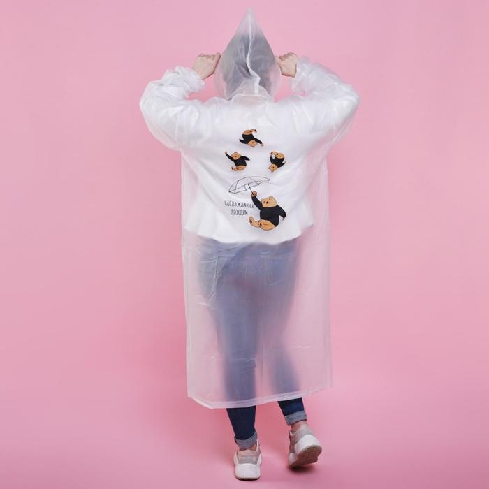 Дождевик взрослый плащ «Наслаждаюсь дождём», размер 42-48, 60 х 110 см, цвет белый