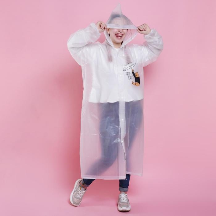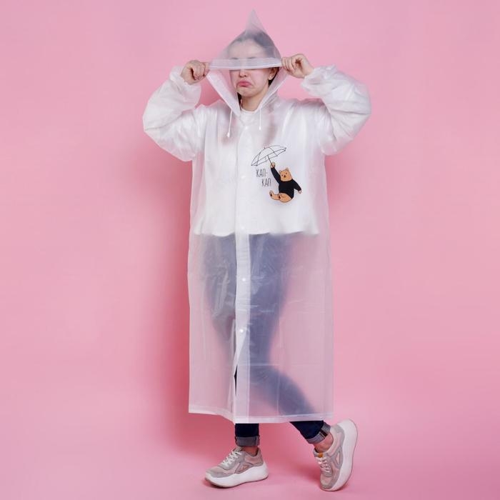 Дождевик взрослый укороченный LOOK INSIDE, на кнопках, цвет белый, размер 42-48