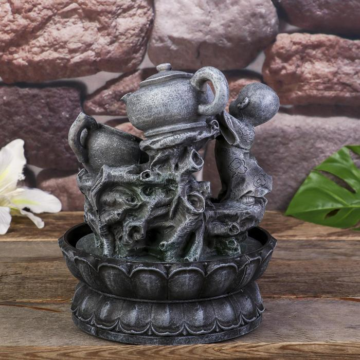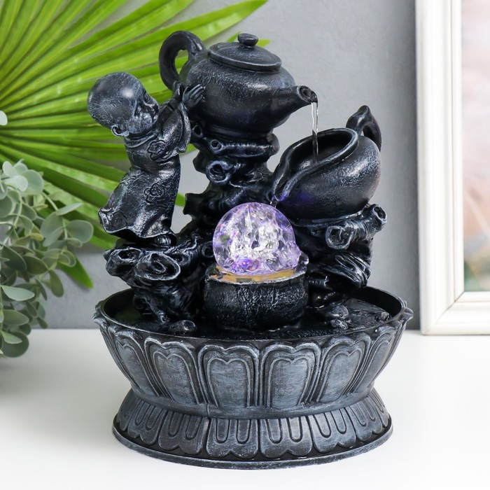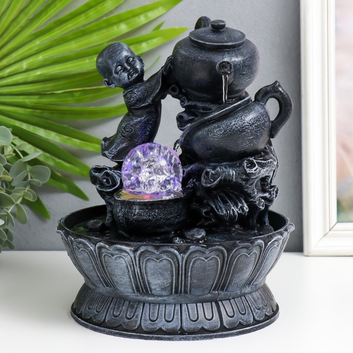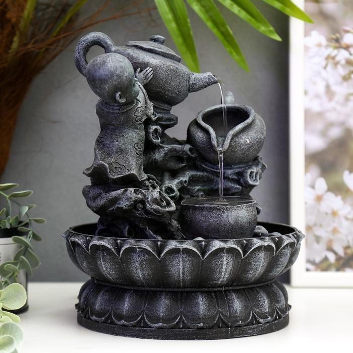 Фонтан настольный с подсветкой "Маленький Будда с чайником" 25х19,5х19,5 см