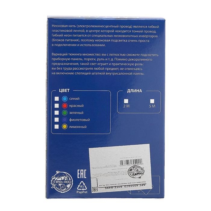 Неоновая нить Cartage для подсветки салона, адаптер питания 12 В, 7 м, синий
