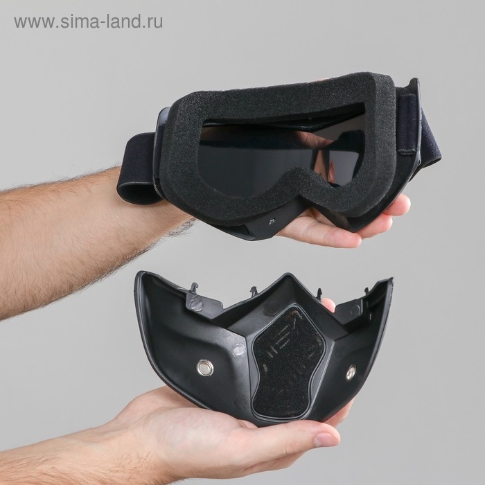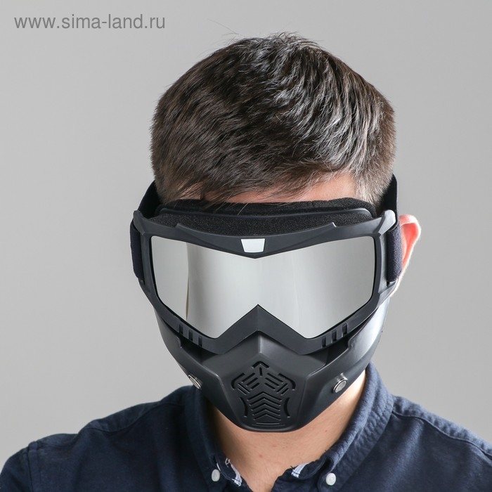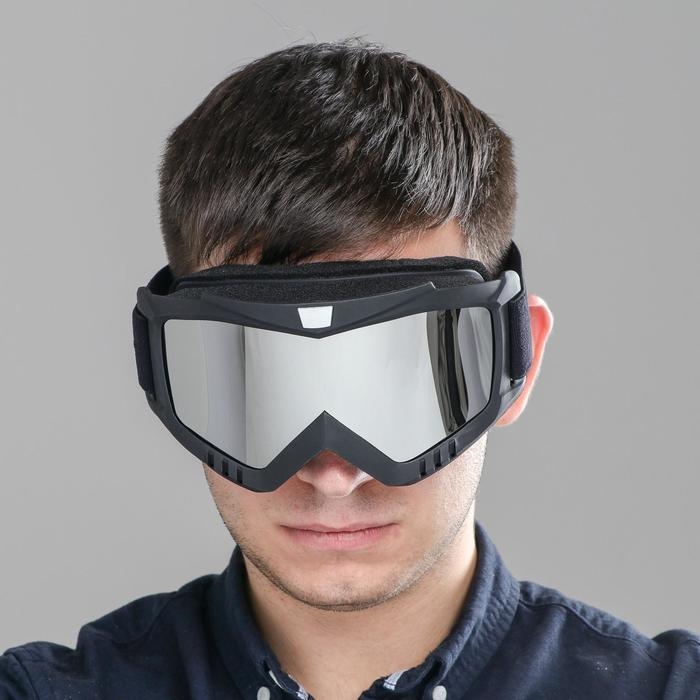 Очки-маска для езды на мототехнике, разборные, стекло хром, черные