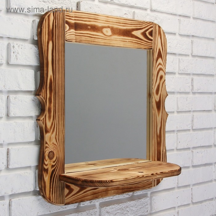 Зеркало резное с полкой, обожжённое, 53×53×1,6 см