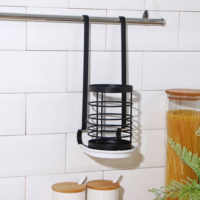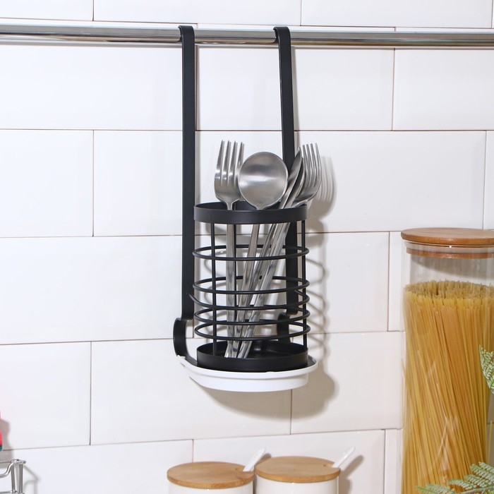 Держатель для столовых приборов на рейлинг, цвет чёрный