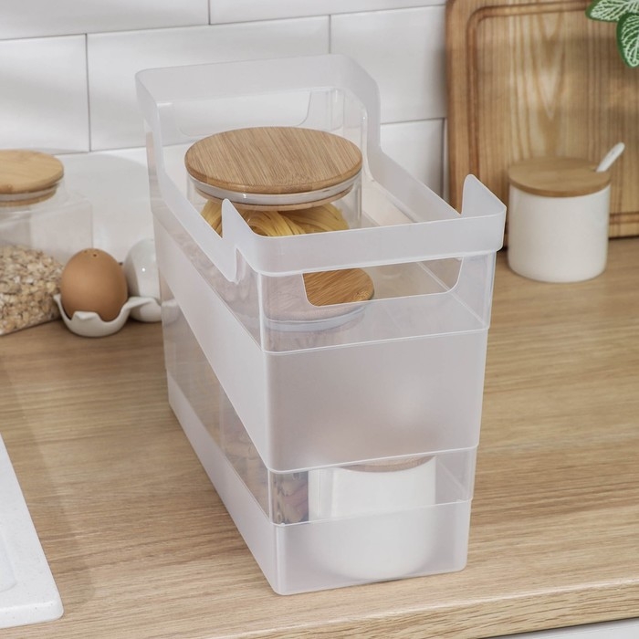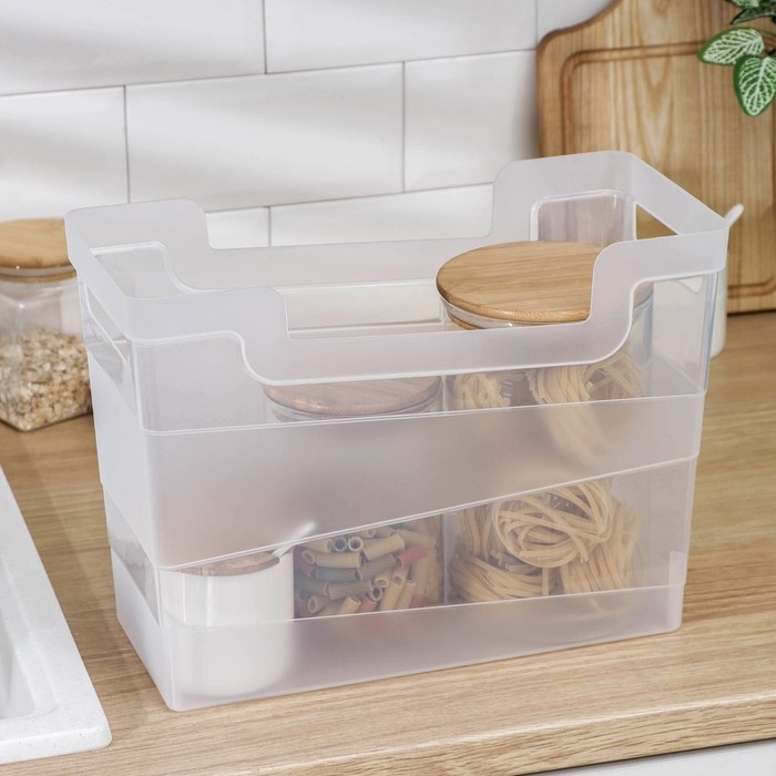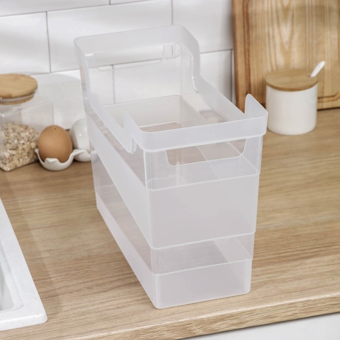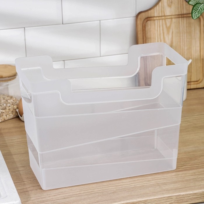 Вместительный контейнер обеспечит удобное хранение продуктов в холодильнике, либо различных вещей в любом шкафе, полке, на столе. Предотвратит падение бутылочных изделий, обеспечит сохранность хрупких предметов.
