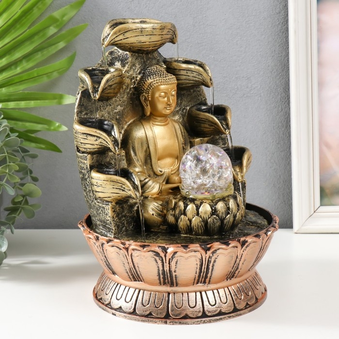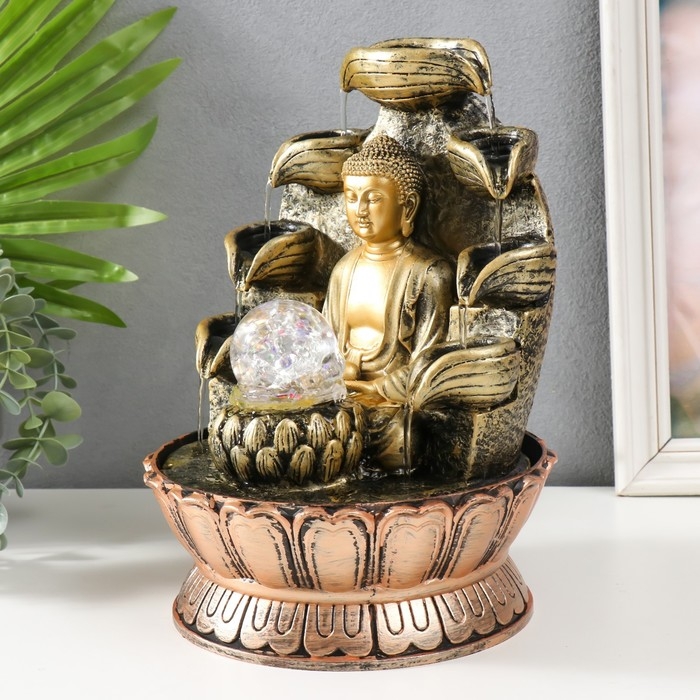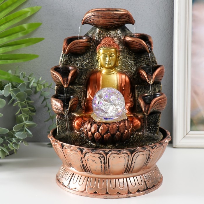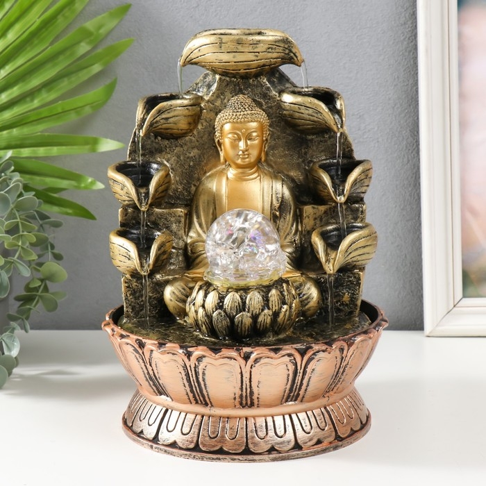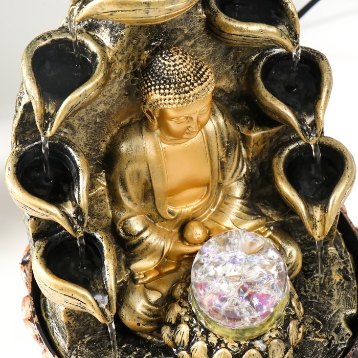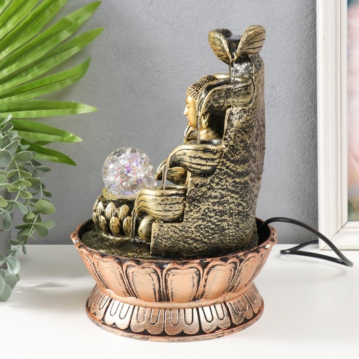 Фонтан настольный от сети, подсветка "Будда у скалы с чашами" 26х20х20 см, МИКС