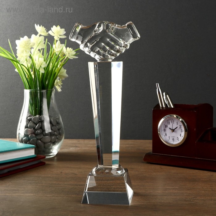 Сувенир стекло "Стела наградная - Рукопожатие" 26 см