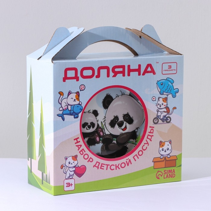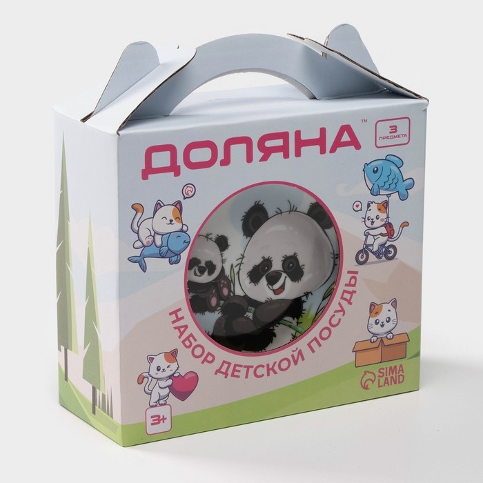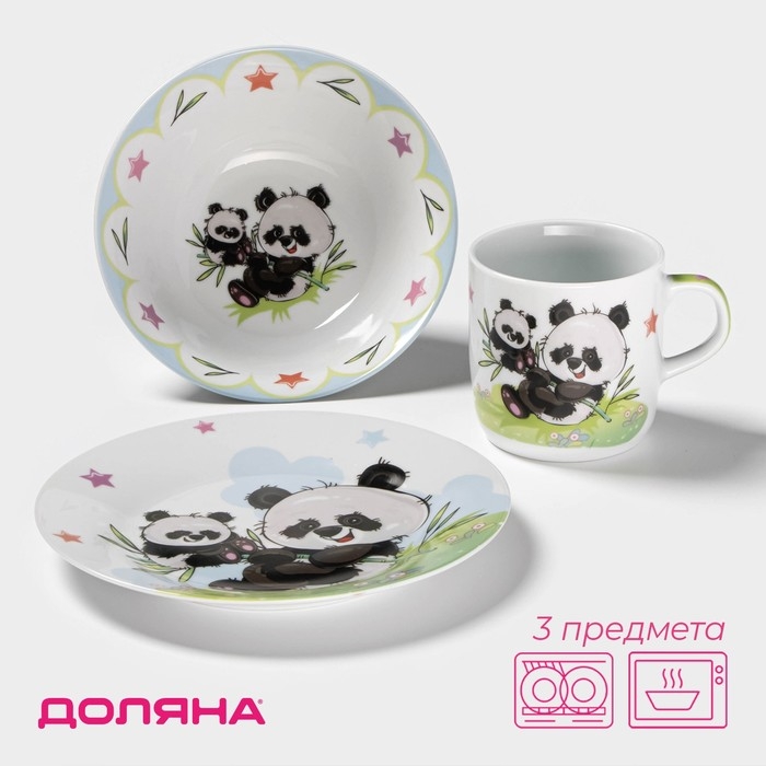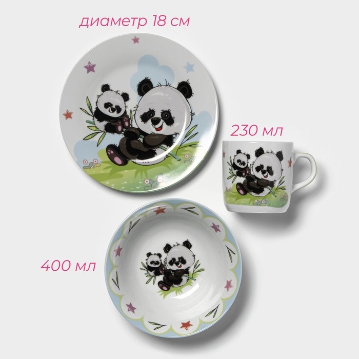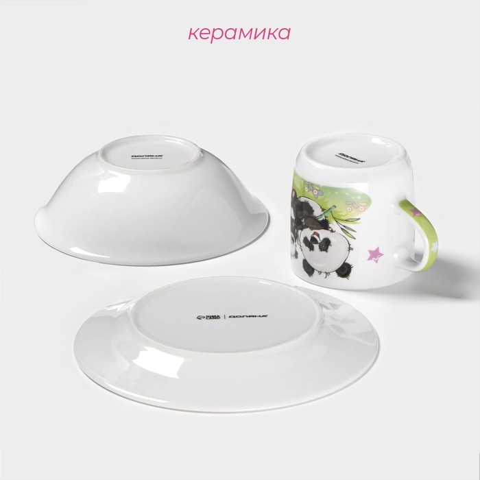 Набор детской посуды из керамики Доляна «Семья пандочек», 3 предмета: кружка 230 мл, миска 400 мл, тарелка d=18 см