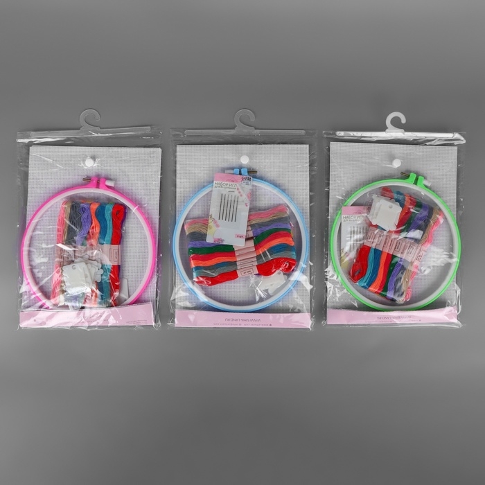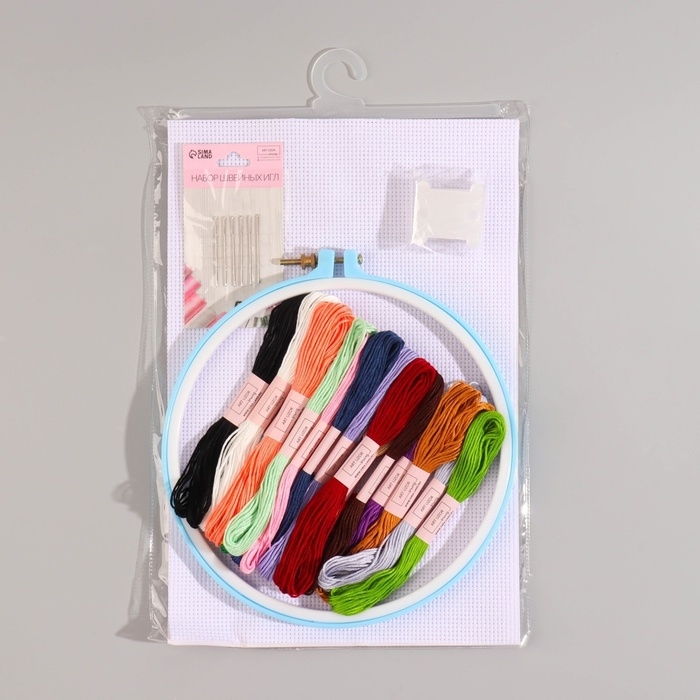 Набор для вышивания крестиком: канва без рисунка 30 × 20 см, нитки 20 шт, пяльцы d = 18 см, иглы 6 шт, шпульки 10 шт, цвет МИКС
