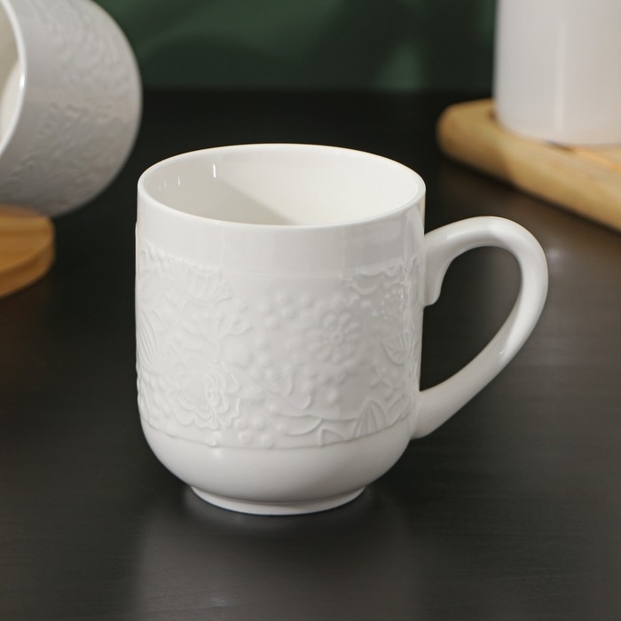 Кружка керамическая с ложкой Доляна «Ноель», 280 мл, цвет бежевый