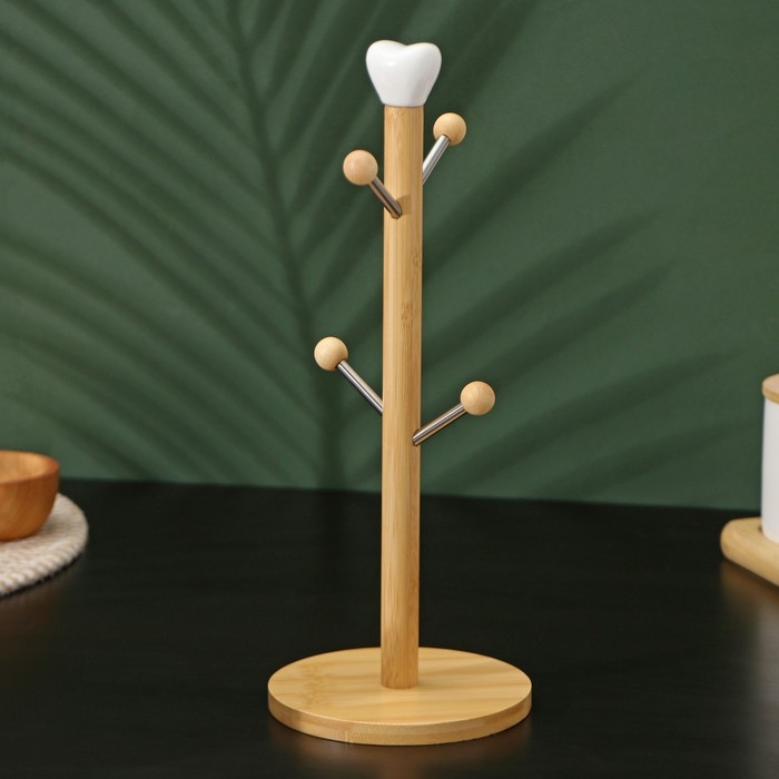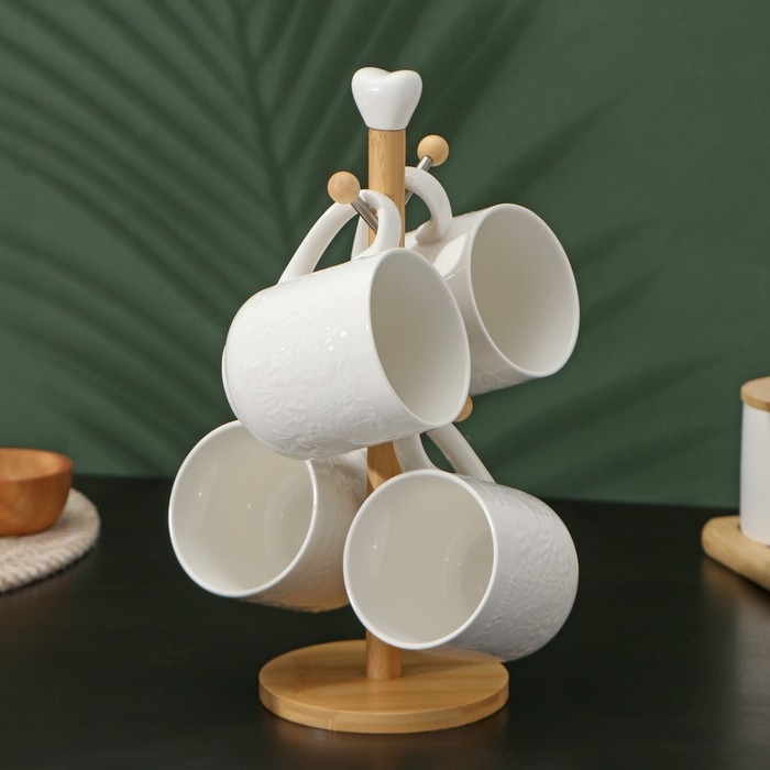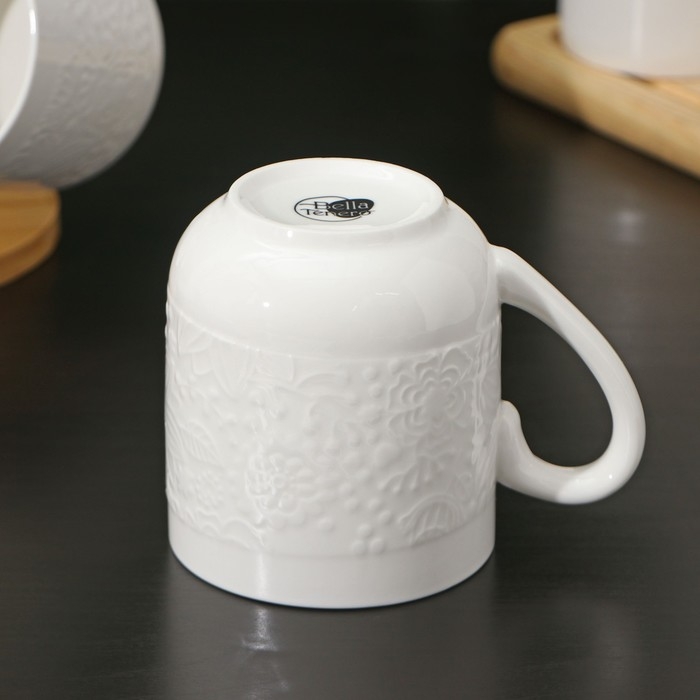 Набор фарфоровых кружек на деревянной подставке BellaTenero, 4 предмета: 400 мл, цвет белый