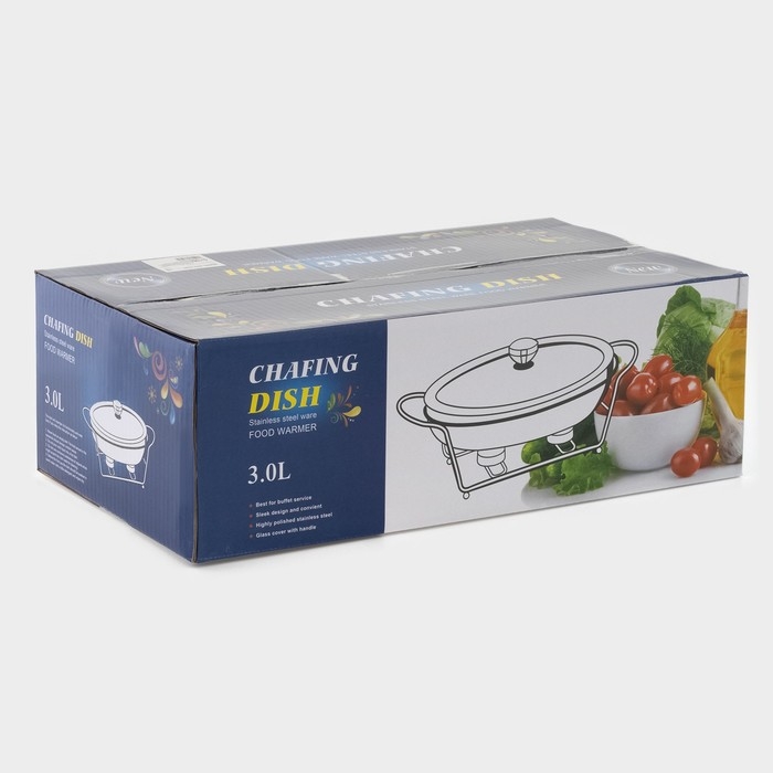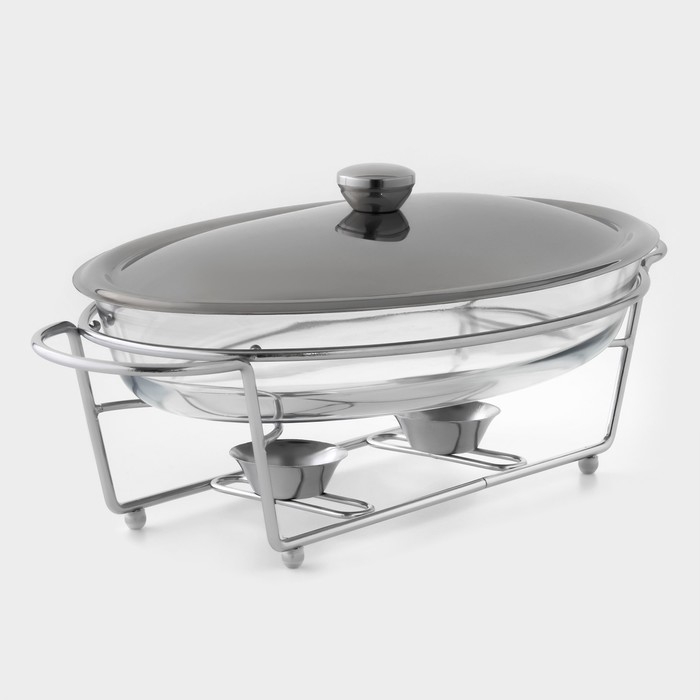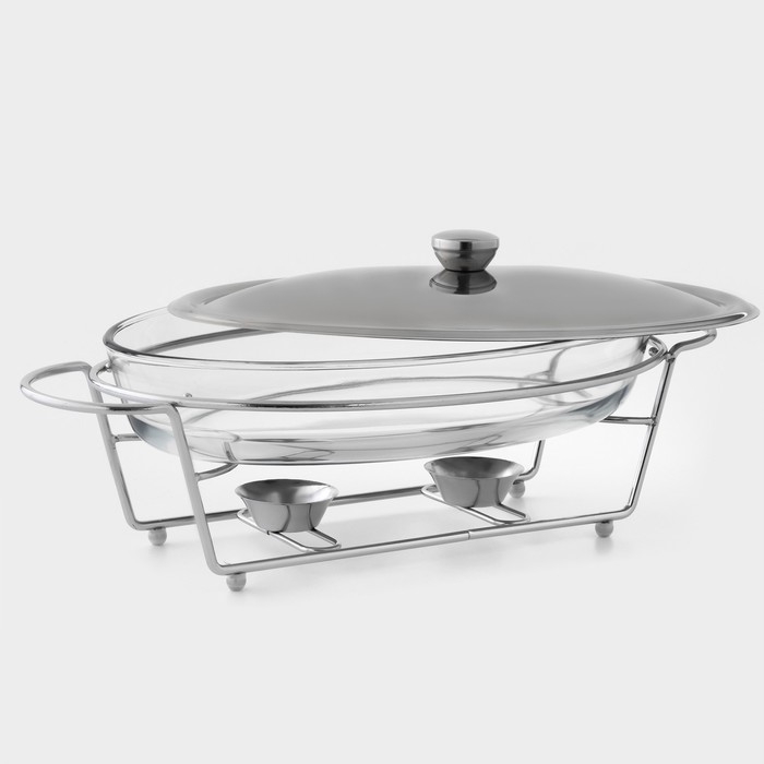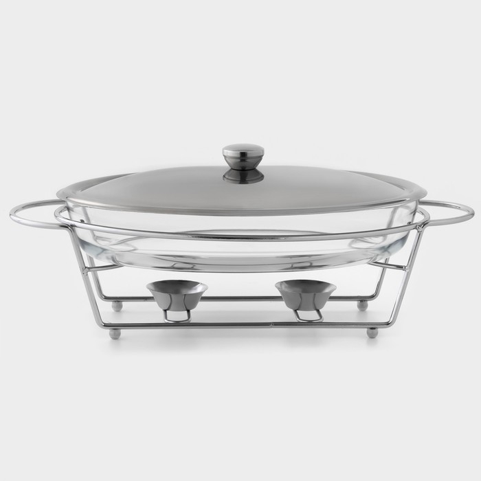 Мармит из жаропрочного стекла, 3 л, 44×25×17 см, с крышкой, на подставке