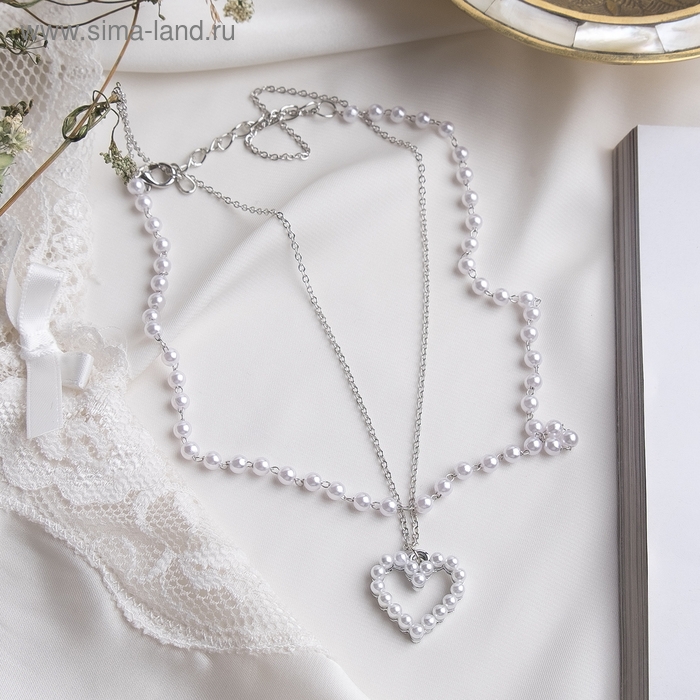 Кулон с жемчугом «Цепь» олимпия, сердце, цвет белый в серебре, 40 см
