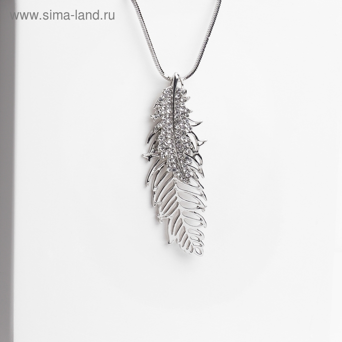 Кулон «Перо» ангела, цвет белый в серебре, 72 см
