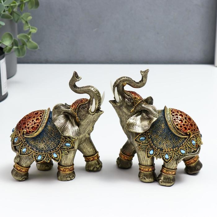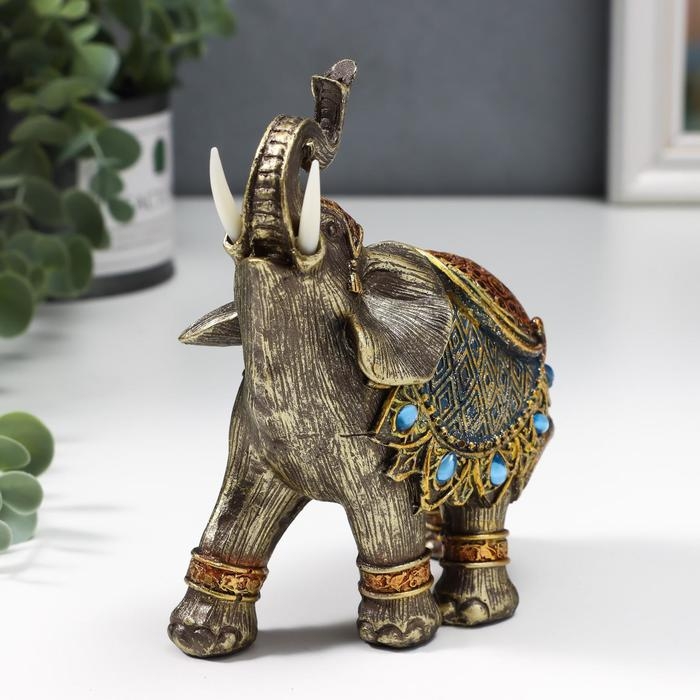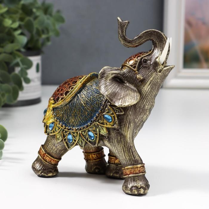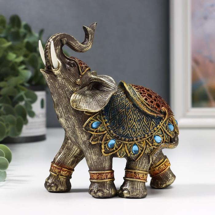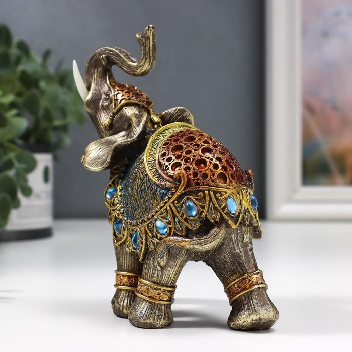 Сувенир полистоун "Слон в синей попоне с сапфирами" МИКС 14х13х6 см
