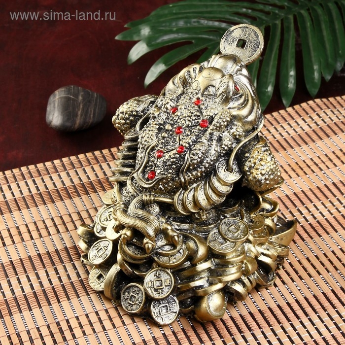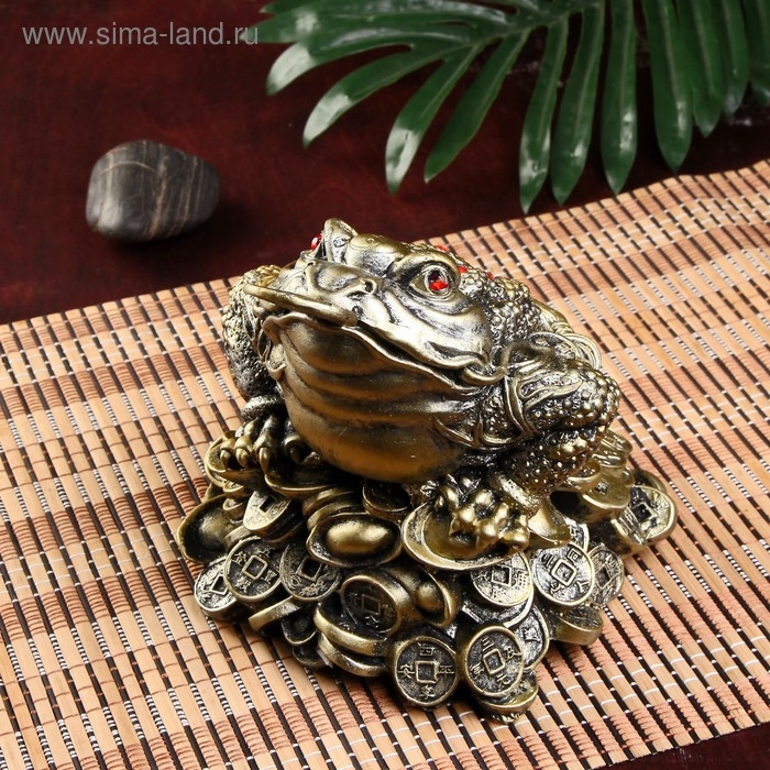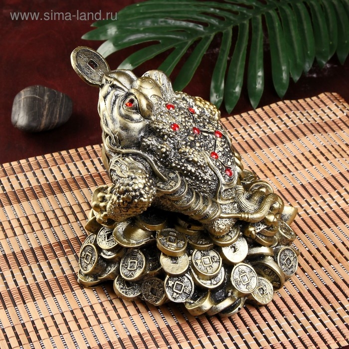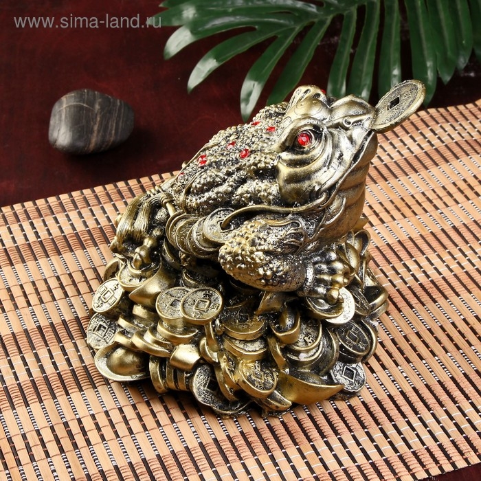 Нэцке полистоун бронза "Денежная жаба с монетой на горе монет" 16,2х19х16,5 см