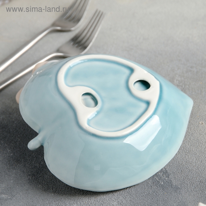 Блюдо керамическое «Птичка на листочке», 15,5×15,5 см, цвет голубой