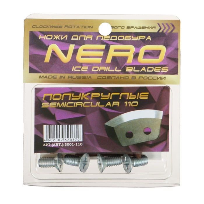 НЕРО изготавливает ножи различной конфигурации (сталь 65Г), которые подходят ко всем отечественным ледобурам со шнеком диаметром от 110 до 180 мм. Высокое качество ножей NERO уже оценено тысячами рыболовов-зимников, и именно им, при возможности выбора, они отдают свое предпочтение. Наиболее эффективны ножи при работе с «родным» ледобуром.