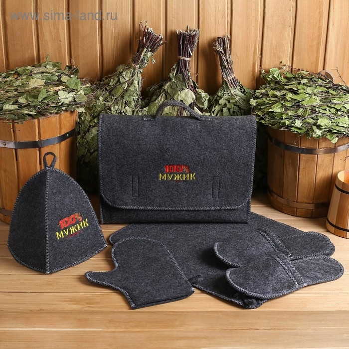 Набор для бани 5 предметов (портфель, шапка, тапочки "Директор бани", варежка, коврик) серый