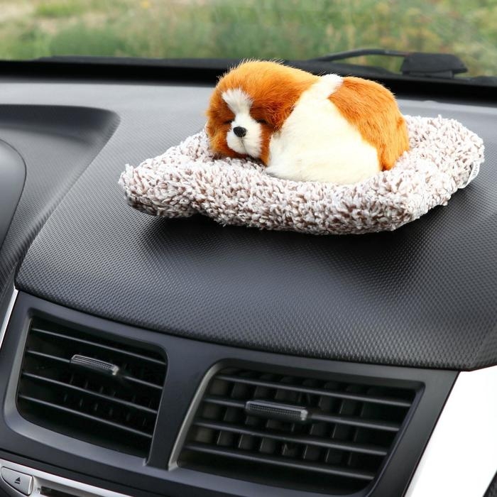 Игрушка на панель авто, собака на подушке, бело-рыжий окрас