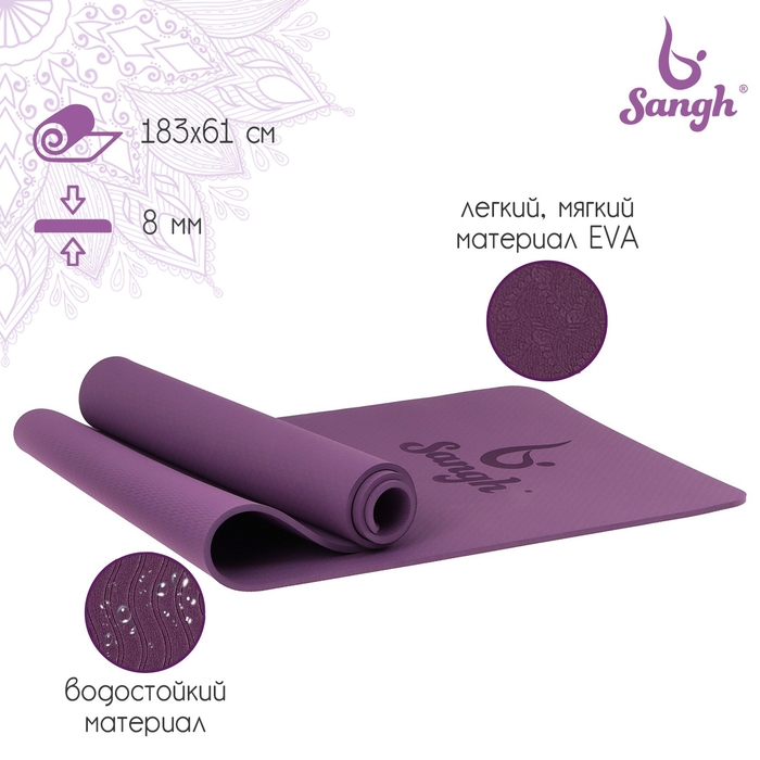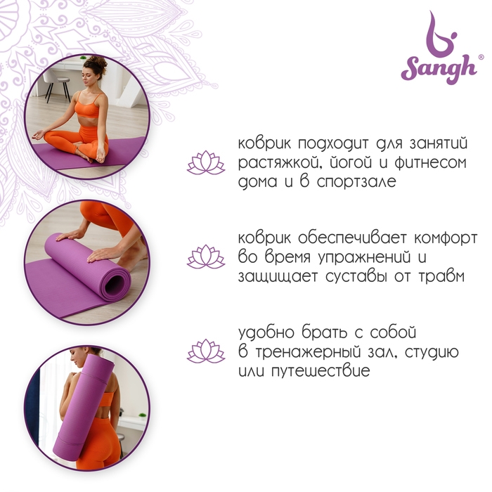 Коврик для йоги Sangh, 183×61×0,8 см, цвет фиолетовый