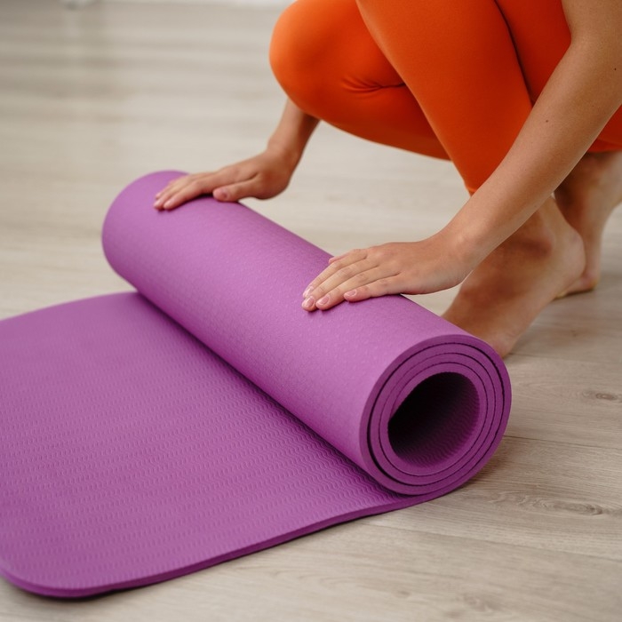 Коврик подходит для занятий йогой и фитнесом дома и в спортивных залах. Помогает в выполнении асан или других упражнений. Смягчает упор тела на твёрдую поверхность. Сохраняет форму после выполнения упражнений.