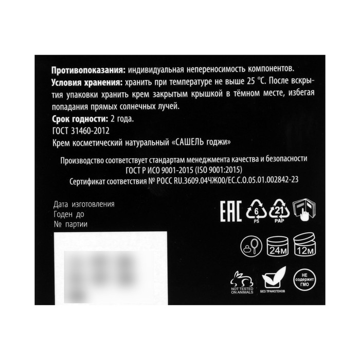 Крем косметический натуральный «Сашель Годжи» для век и губ, 30 мл