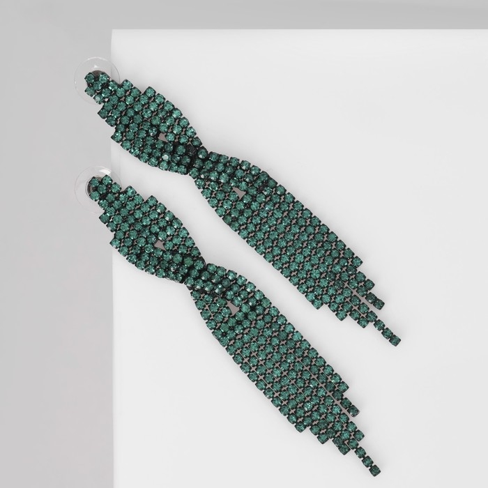 Серьги висячие со стразами «Маскарад» икс, цвет зелёный, 9 см