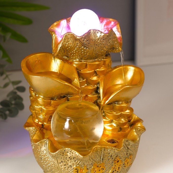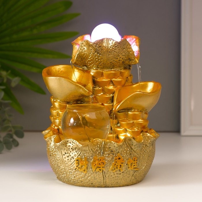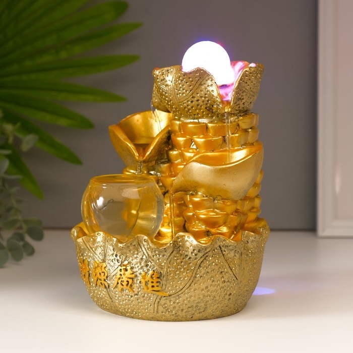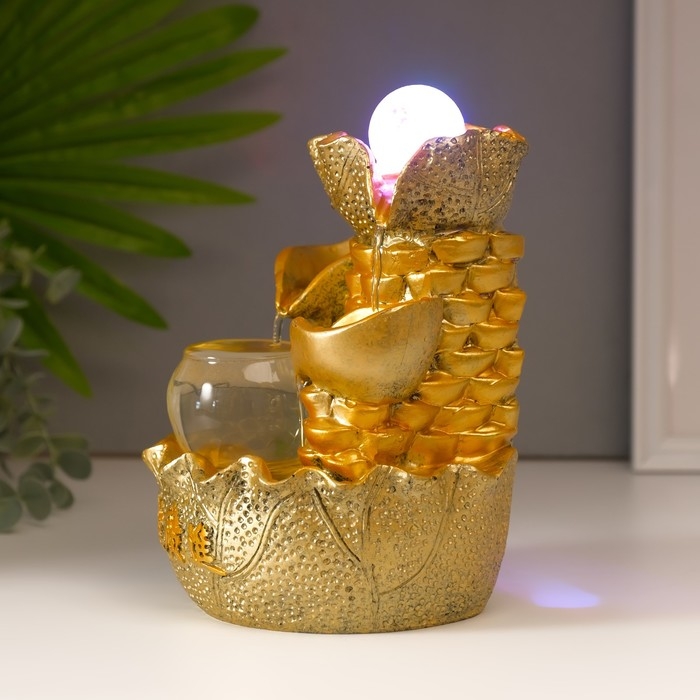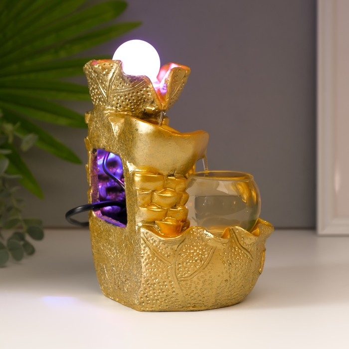 Фонтан настольный от сети, подсветка "Листья и слитки золота" золото 21х15х12 см
