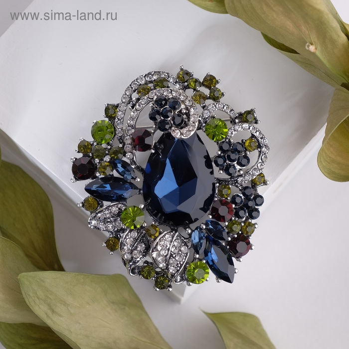 Брошь «Императрица» самоцветная, цветная в серебре