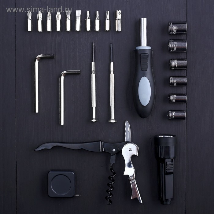 Биты, Держатель бит, Отвёртка, Рулетка, Торцевая головка, Фонарик, Шестигранник, Штопор