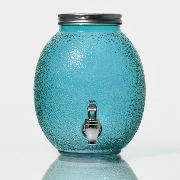Диспенсер для напитков стеклянный «Фреш», 4 л, 21×16×24 см, цвет голубой