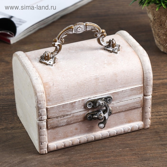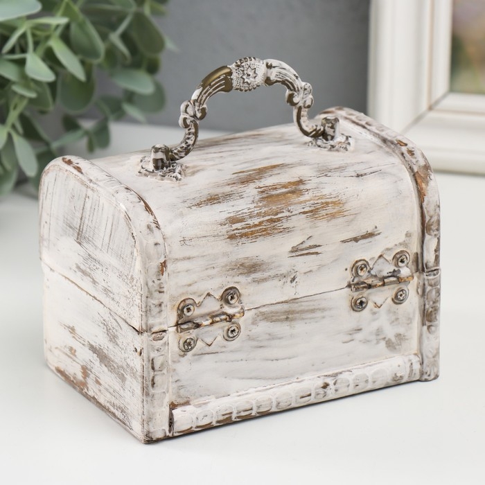 Шкатулка дерево сундучок "Состаренная белая" 8,5х12х8,5 см