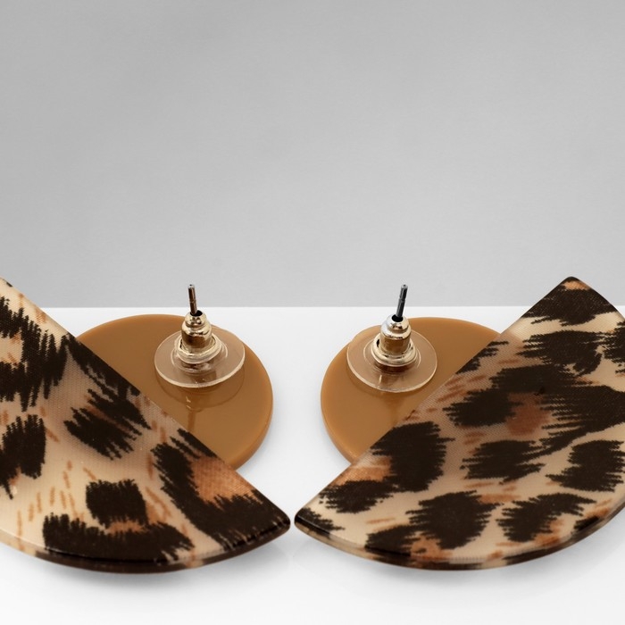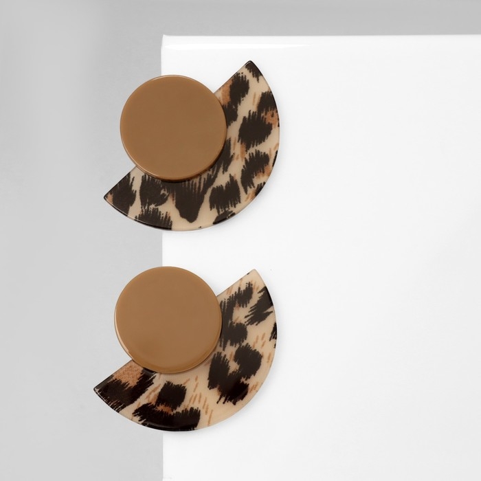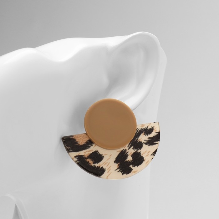 Серьги пластик «Танзания» полукруг бежевый леопард, цветные