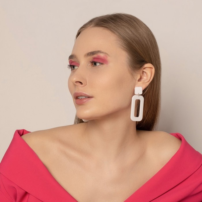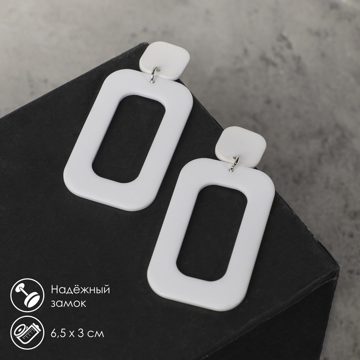Серьги пластик «Вивьен» прямоугольник, цвет белый