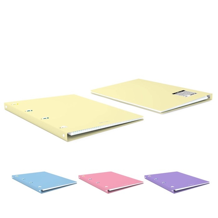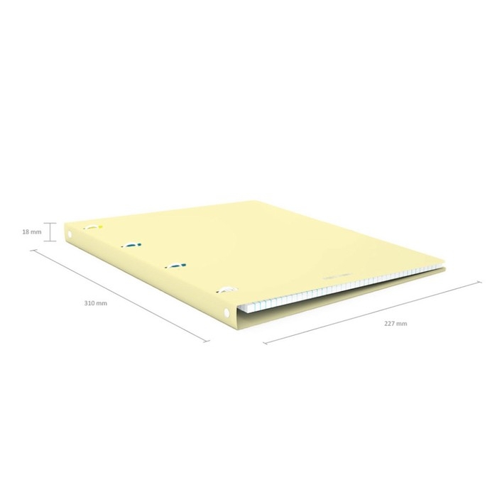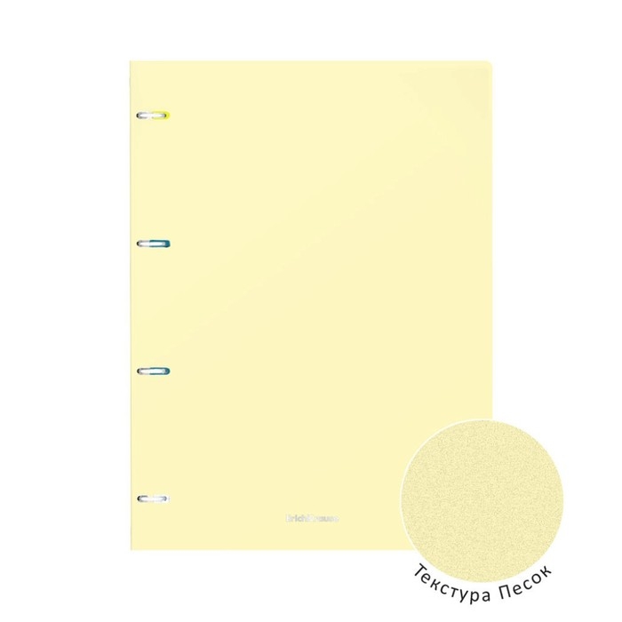 Тетрадь общая формата А4 (210х297 мм). Обложка из высококачественного износостойкого матового пластика с фактурой «песок». Пастельные цвета обложки. В блоке 80 листов в клетку. Бумага офсетная плотностью 60 г/м2. Цвет линовки - синий. Скругленные уголки обложки. Тип скрепления - кольца. Прорези под кольца оснащены фиксаторами. Товар поставляется в нескольких вариантах цвета без возможности выбора.