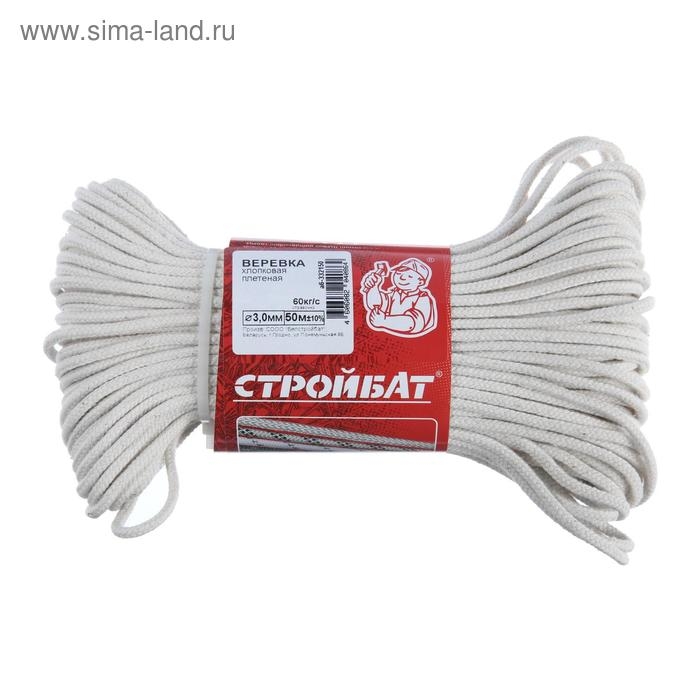 Веревка хлопковая плетеная 3.0 мм, 50 м, без покрытия