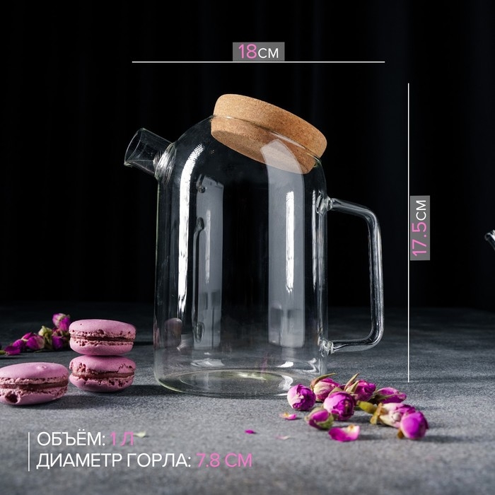 Кувшин стеклянный с пробковой крышкой Magistro «Эко», 1 л, 18×11×17,5