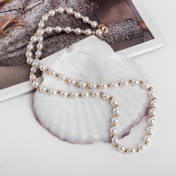 Бусы «Жемчуг» на цепочке, шар №6, цвет белый в золоте, L=53 см