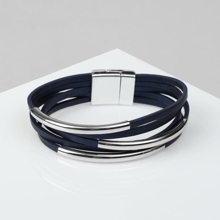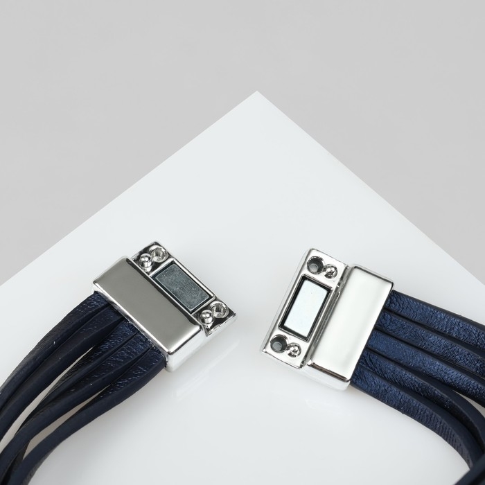 Браслет кожа «На магните» три дуги, цвет тёмно-синий, 18,5 см