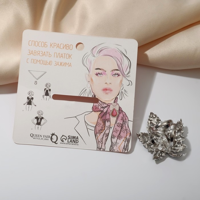 Кольцо для платка «Ажур» цветы, цвет белый в серебре