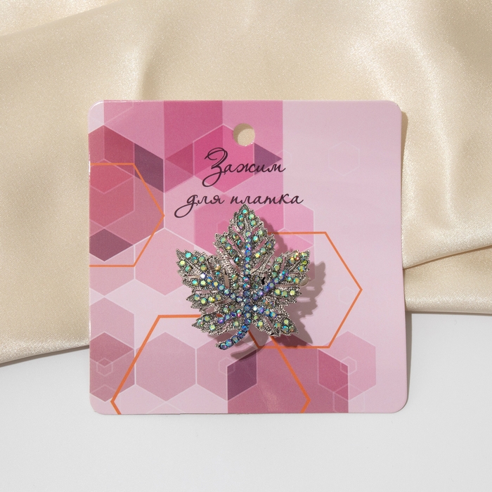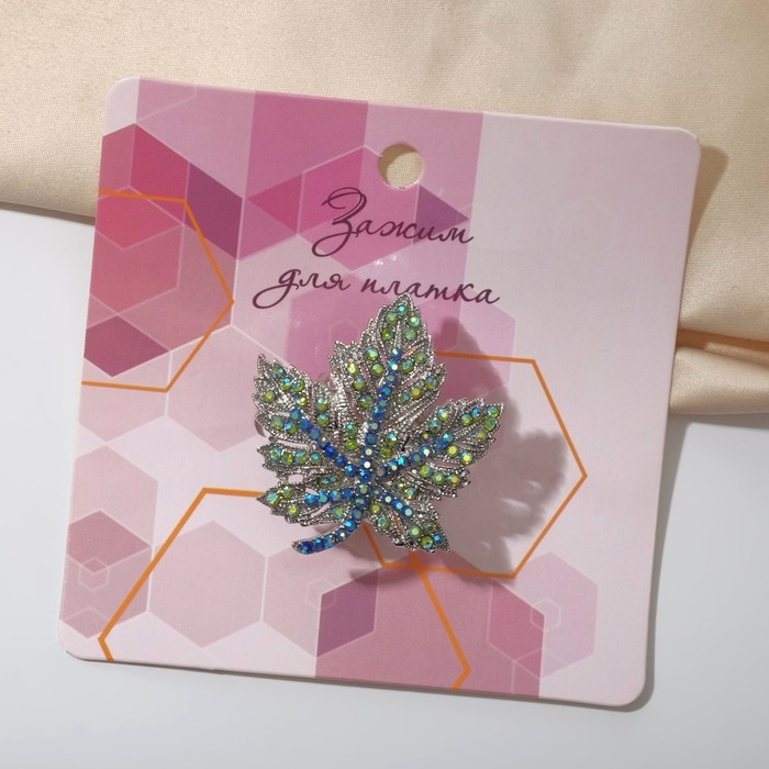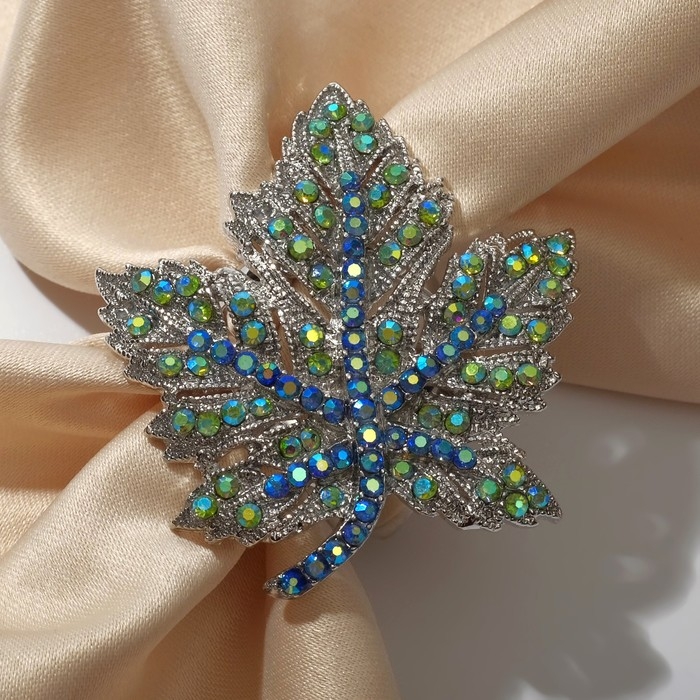 Кольцо для платка «Лист», цвет радужно-синий в серебре