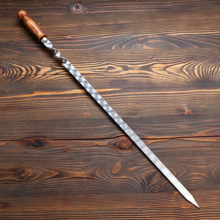Шампур с деревянной ручкой, рабочая длина - 50 см, ширина - 10 мм, толщина - 3 мм с узором