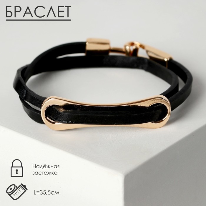 Браслет кожа «Шаман» пластина, цвет чёрный в розовом золоте, 35,5 см
