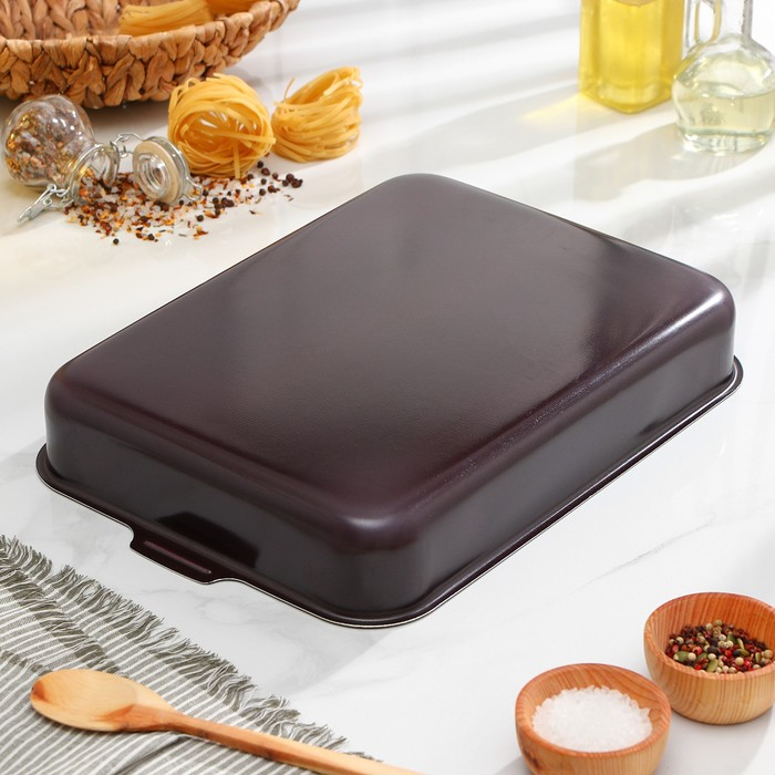 Противень «Хозяюшка», 27×35 см, h=6 см, антипригарное покрытие, цвет бордовый