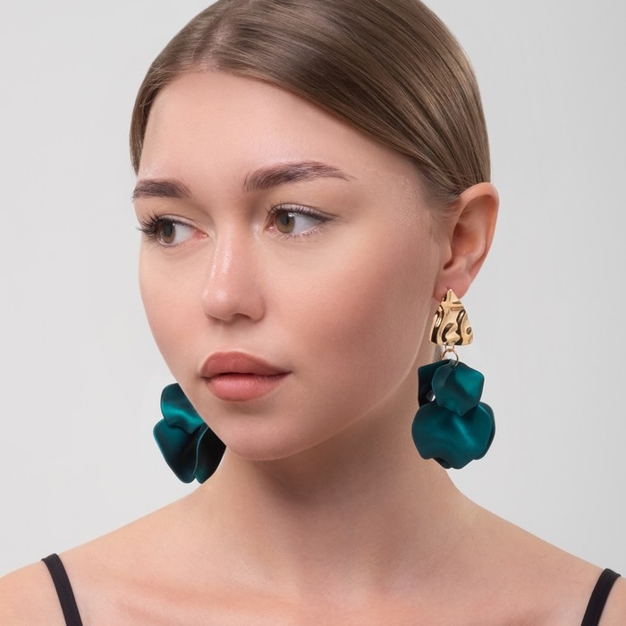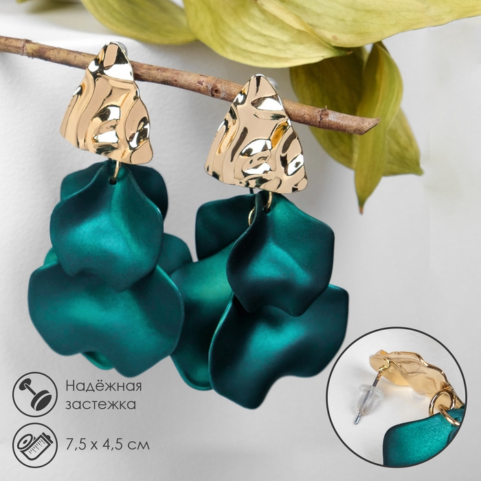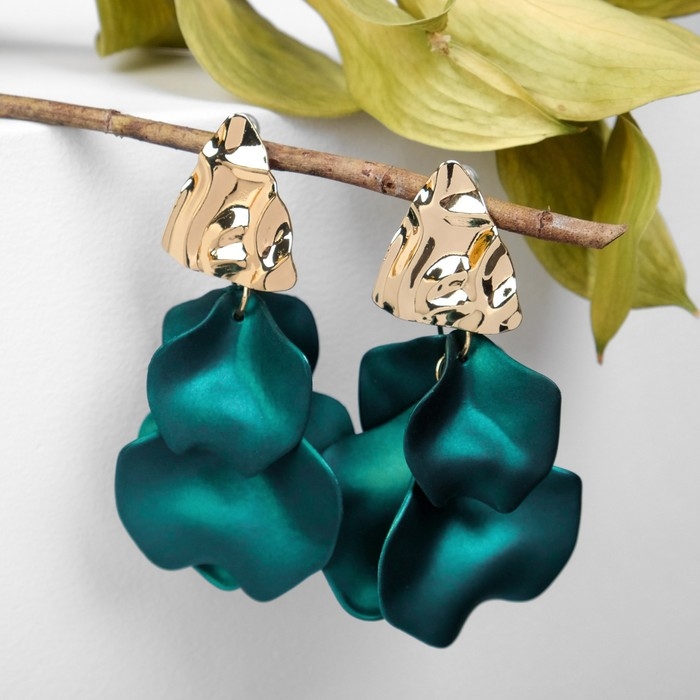 Серьги ассорти «Ветер» мятые треугольники, цвет зелёный