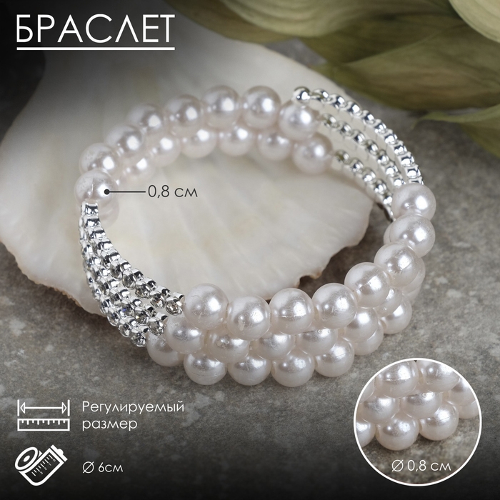 Браслет жемчуг «Невеста» со стразами, шар № 6, цвет белый, d=5,5 см