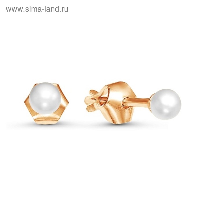Пусеты шар №4 «Жемчуг» мини, розовое золочение