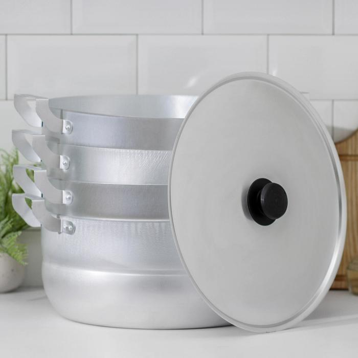 Мантоварка алюминиевая, 13 л, d=34,5 см, с 3 сетками, металлическая крышка